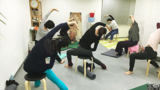 キネシスの特徴でもあるイスに座って行うエクササイズは、骨盤のまっすぐな状態を確認しやすく正しい姿勢で身体のコアを強化することができます。